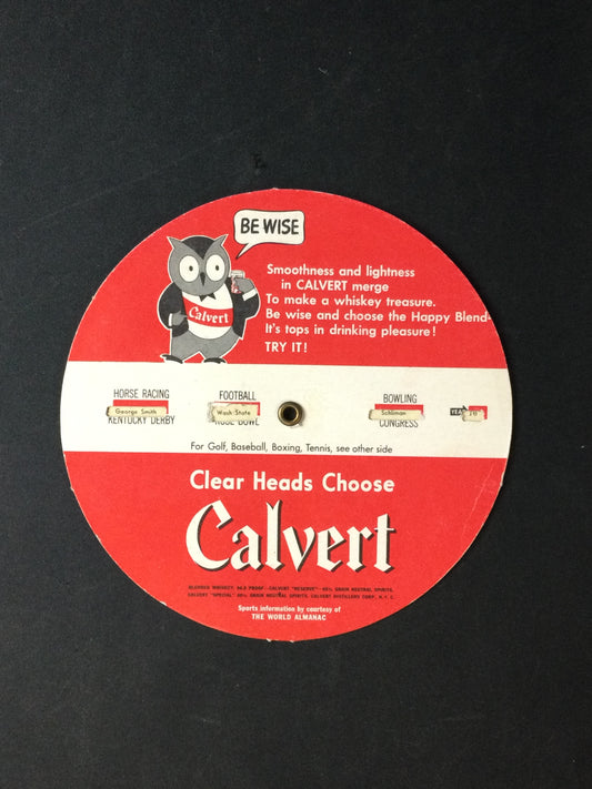Calvert Advertising Wheel from 1944, 34 years of champions Boxing- Baseball- Golf - Tennis