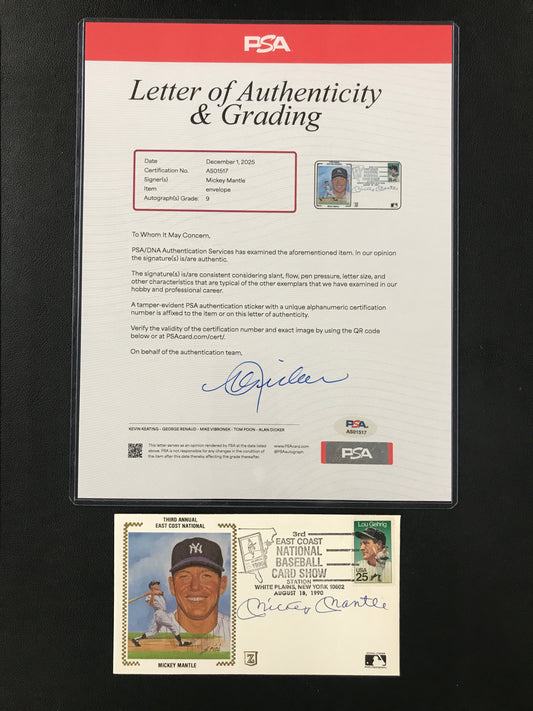 Mickey Mantle SIGNED First Day Cover East Coast Card Show PSA/DNA 9 Graded Auto Yankees