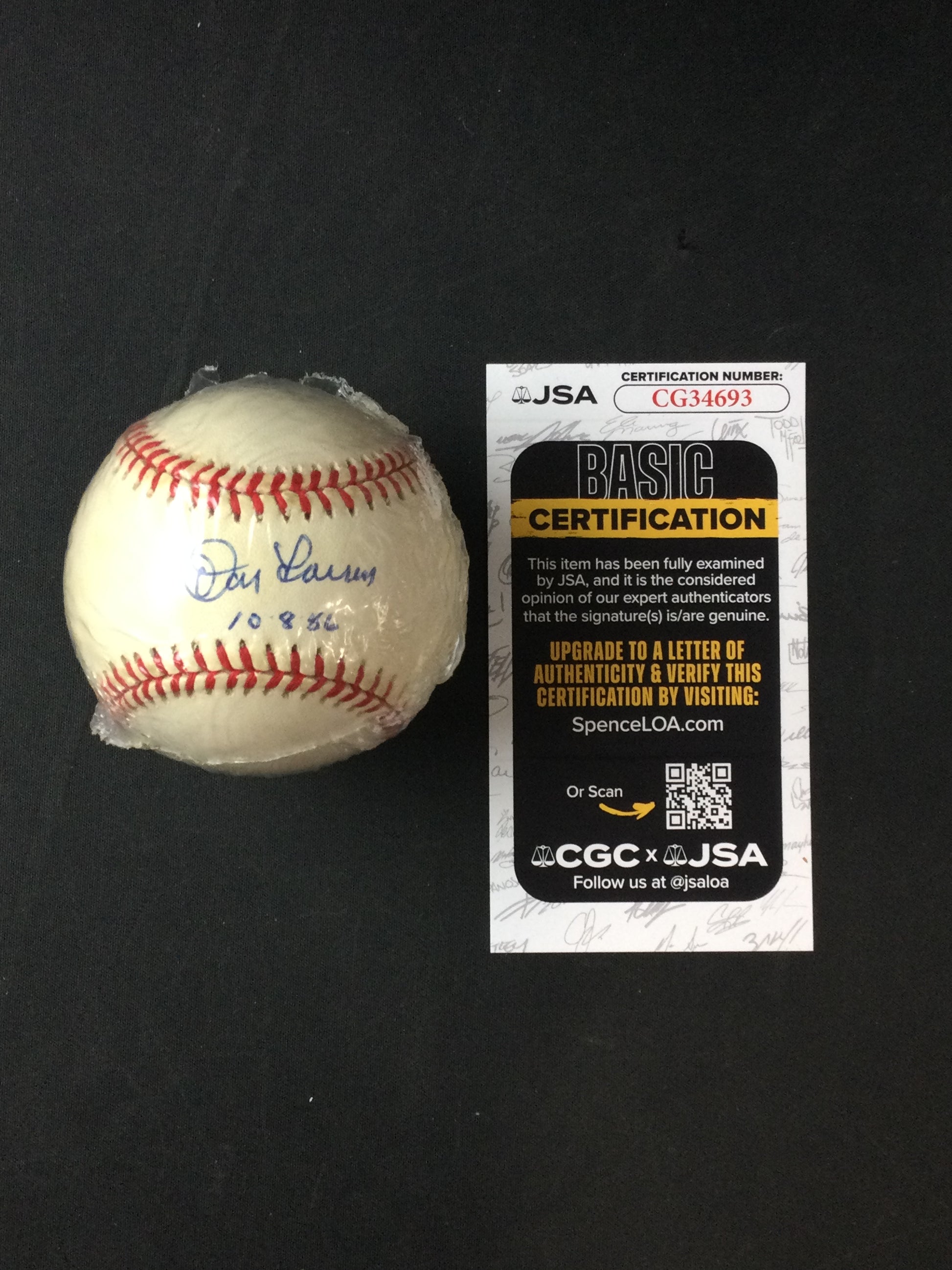 - 10-8-56 for his World Series Perfect Game inscription
