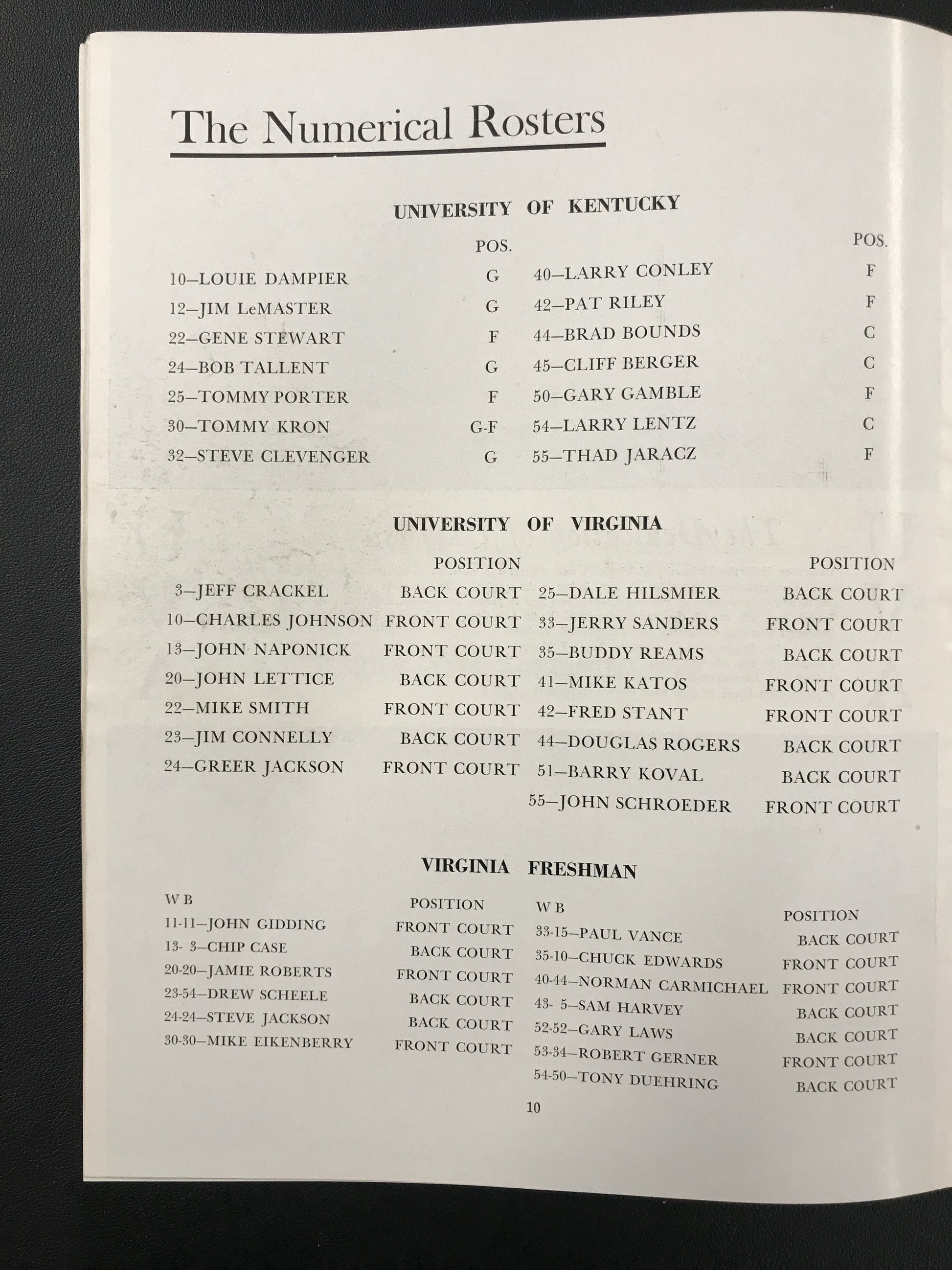 University of Virginia Basketball UVA vs. Kentucky 1965 Program with Pat Riley RARE